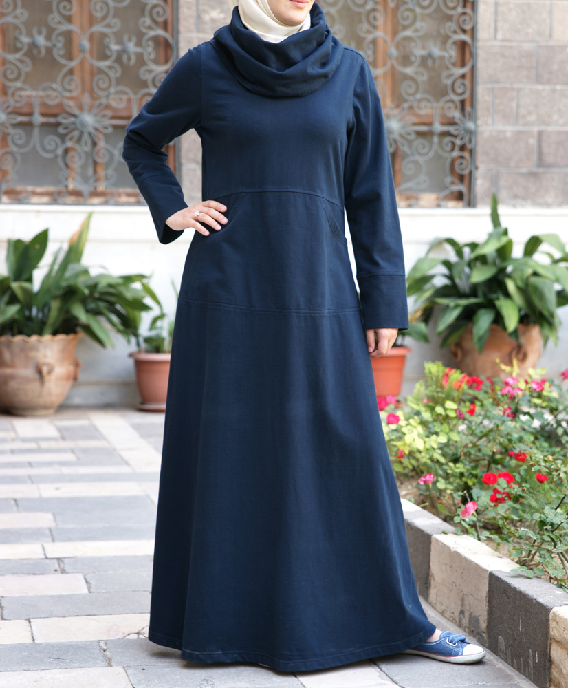 Robe longue à capuche zippée pour femme (Vêtement Hijab décontracté et sport) - Couleur Noir et Kaki - REF. 37160 (29.90 €)