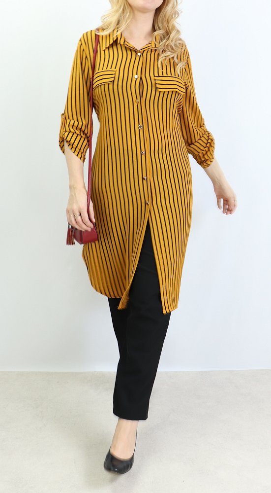 Chemise longue de couleur Jaune moutarde a rayures noires