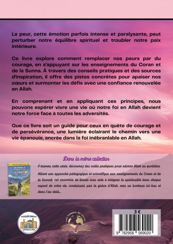Ce livre explore comment remplacer nos peurs par du courage, en s'appuyant sur les enseignements du Coran et de la Sunna. À travers des conseils pratiques et des sources d'inspiration, il offre des pistes concrètes pour apaiser nos cœurs et surmonter les défis avec une confiance renouvelée en Allah.