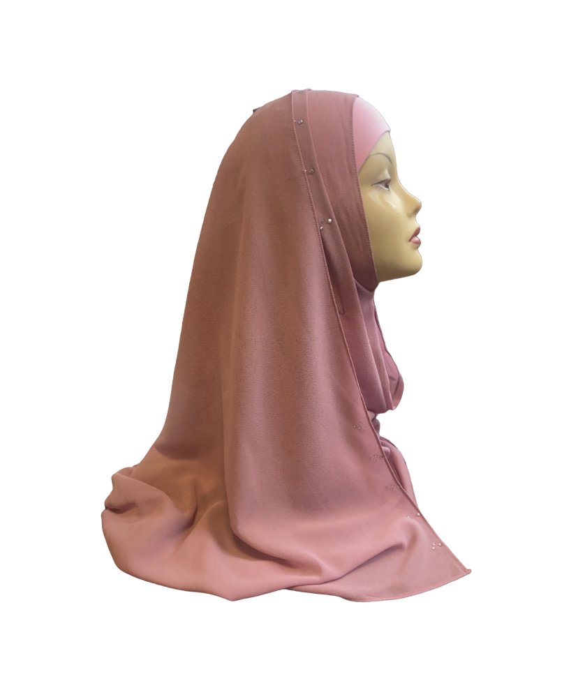 Ce hijab prêt-à -porter est conçu pour être pratique et rapide à enfiler.