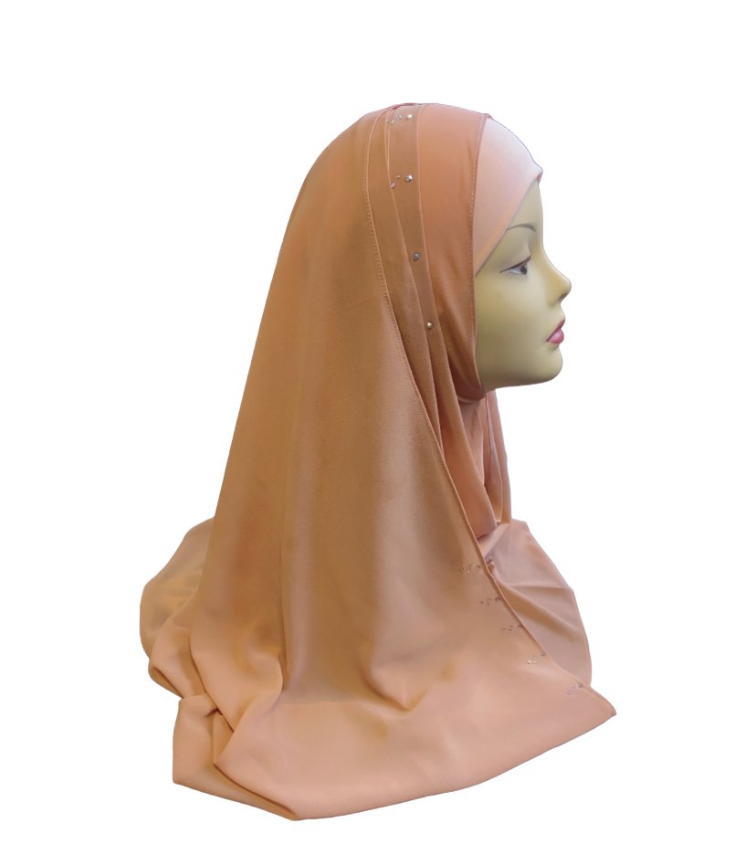 Hijab 1 pièce couleur taupe perlé sur le bonnet avec motifs cuivrés - REF. 22092 (6.90 €)