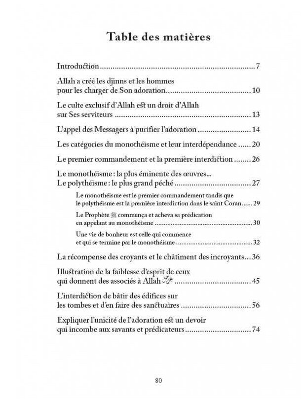 Lorsqu'on lit attentivement le Coran et qu'on le médite, on constate que le premier commandement qui est édicté est l'adoration d'Allah sans associé. De même, on relève que le premier interdit décrété est celui du polythéisme.Ce thème prioritaire à pour but d'inciter les croyants à porter une attention particulière au monothéisme et à son opposé, à savoir le polythéisme.
