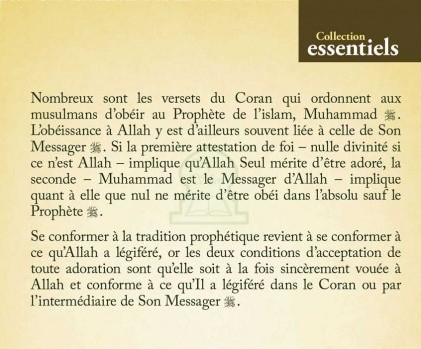 L’obéissance à Allah (SWT) est d’ailleurs souvent liée à l’obéissance à Son Messager (SAW). Si la première attestation de foi – nulle divinité si ce n’est Allah – implique qu’Allah Seul mérite d’être adoré, la seconde – que Muhammad est le Messager d’Allah – implique quant à elle que nul être ne mérite d’être obéi dans l’absolu sauf le Prophète (SAW).