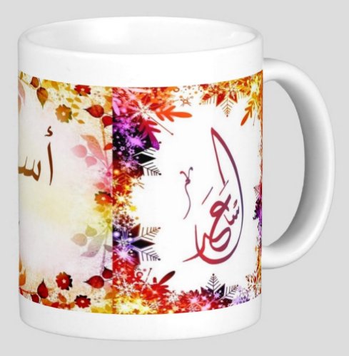 Voir l'ensemble des mugs dédiés au prénoms calligraphiés en arabe (Mugs prénoms arabes et musulmans féminins - Mugs prénoms français)