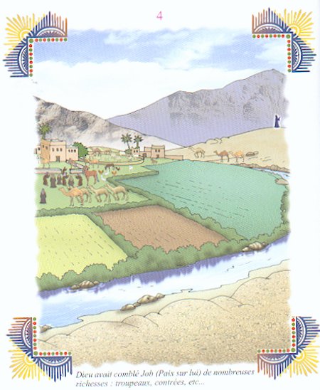Job (Ayoub, paix sur lui) fut envoyé comme Prophète aux habitants de Basan près de Damas. Il subit une série d'épreuves ; il perdit ses biens et ses enfants, et fut atteint d'une sorte de gale qui recouvrit tout son corps à l'exception de sa tête. Il fit preuve d'une endurance inébranlable jusqu'au jour où Dieu le délivra ; Il le guérit de sa maladie, lui accorda de nouveau ses richesses et lui donna comme enfants le double de ceux qu'il avait perdus.