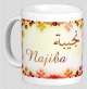 Mug avec le prénom "Samir" écrit en français, en arabe (سمير) et calligraphié de façon artistique en arabe sur la partie droite.
