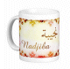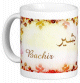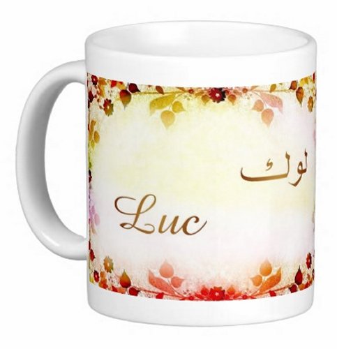 Mug avec le prénom "Luc" écrit en français, en arabe (لوك) et calligraphié de façon artistique en arabe sur la partie droite.