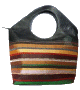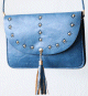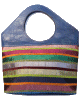 Des Couleurs estivales à porter de main... Très beau sac à main au style moderne, de grand volume, de fabrication artisanale marocaine, en cuir couleur bleue, joliment agrémenté d'une étoffe en sabra multicolore, cousue à même le cuir. Ce sac au look très chic est doté d'une doublure, d'une poche interne, ainsi qu'une fermeture éclair terminé d'une langue en cuir...