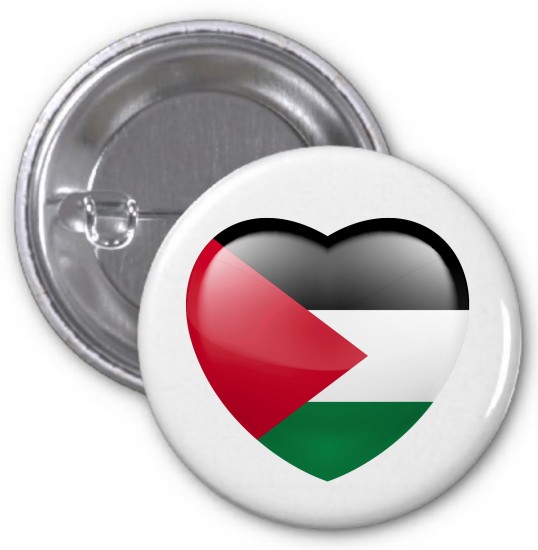 Badge avec un coeur aux couleurs du drapeau palestinien.