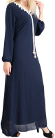 Robe confortable et habillée . Col en V satiné, manches amples resserrées aux poignets par une bande élastique froncée et satinée. Tissu léger style "organza" accompagné d'une doublure. Coupe papillon en haut et droite au niveau des hanches.