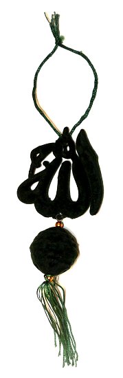 Pendentif vert fonce contenant le nom d'Allah (en arabe)