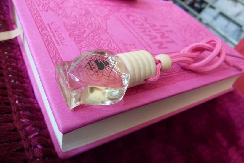 Pack Cadeau femme constitué d'un Coran couverture cuir de luxe (rose) + Joli Porte-Coran en bois sculpté et décoré + Parfum Musc d'Or de luxe (8 ml) - REF. 22929 (35.00 €) |