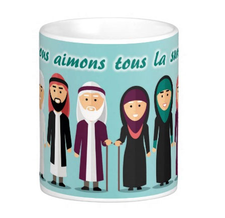 Mug "Nous aimons tous la sounnah" avec une illustration représentant une famille musulmane...