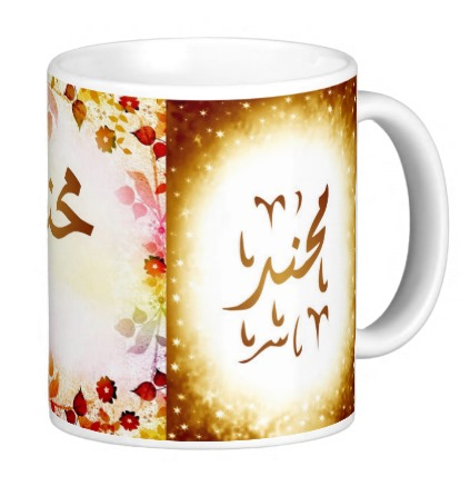 Voir l'ensemble des mugs dédiés au prénoms calligraphiés en arabe (Mugs prénoms arabes et musulmans féminins - Mugs prénoms français)