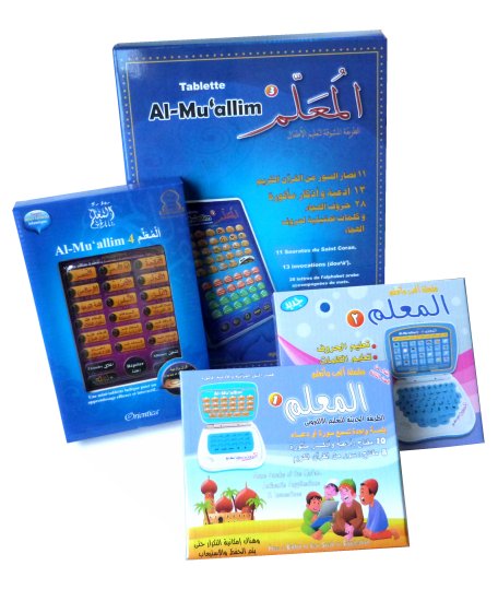 • Al-Muallim (3) Tablette électronique parlante, permet à votre enfant d'apprendre les rudiments de la langue arabe. Il se familiarisera notamment avec les lettres de l'alphabet arabe et découvrira les noms de quelques animaux, ainsi que d'objets de la vie quotidienne.