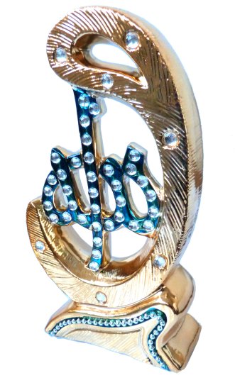 Ensemble de 2 garnitures en porcelaine dorées avec inscriptions des Noms "Allah" et "Mohammed", décorées de diamants blancs.