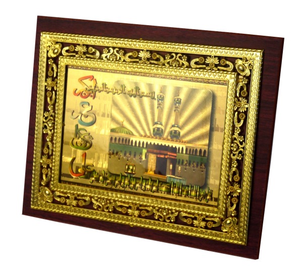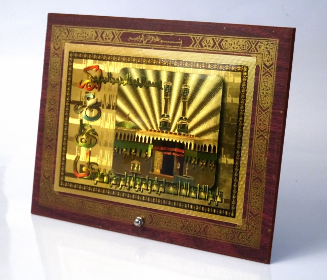 Tableau decoratif en bois : La Mecque et La Kaaba avec decoration doree