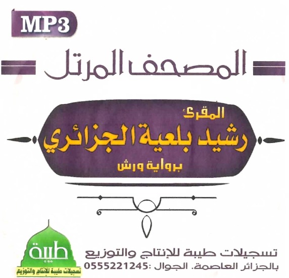 CD MP3 contenant le Saint Coran récité par Cheikh Rachid Belaliya Al-Djazairi en lecture warche.
