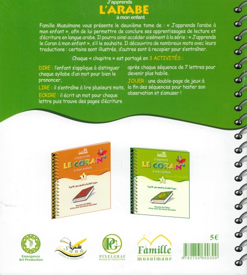 Famille Musulmane vous présente le deuxième tome de : "J'apprends l'arabe à mon enfant", afin de lui permettre de conclure ses apprentissages de lecture et d'écriture en langue arabe. Il pourra ainsi accéder aisément à la série : "J'apprends le Coran à mon enfant", s'il le souhaite.