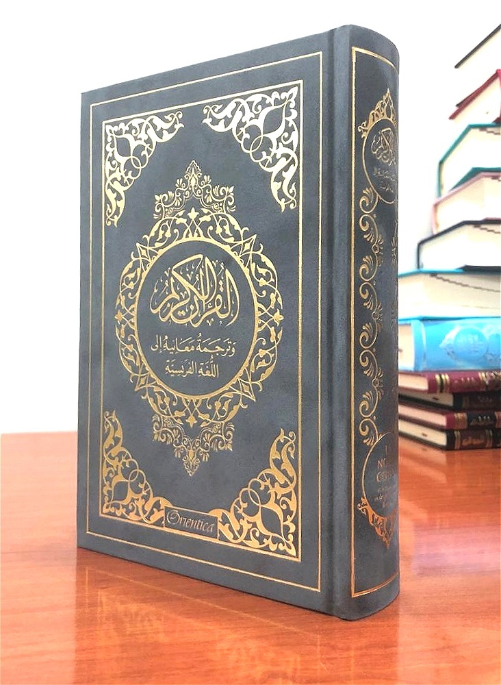 Le Noble Coran et la traduction en langue française de ses sens (bilingue français/arabe) - Edition de luxe couverture cartonnée en daim couleur Gris Anthracite doré - REF. 28831 (24.90 €)