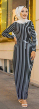 Robe longue d’intérieur, col rond semi-ouvert orné d'une broderie ainsi que les poignets, le devant et les cotés, tissu effet velours. Optez pour ce modèle joli et original avec ses rayures variées. Tissu ne nécessitant aucun repassage.
