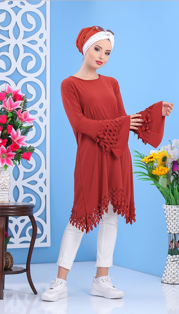 Tunique style habillé pour femme (Vêtement chic pour hijab) - Couleur brique - REF. 36246 (28.00 €)