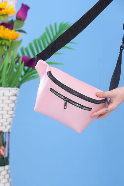 Sac banane à bandoulière avec fermeture éclair pour femme - Couleur rose poudre Vetement & Accessoire