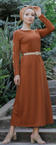 Robe de ville longue décoration boutons pour femme - Couleur rouille - REF. 30412 (28.00 €) - En Promotion à 19.90 €