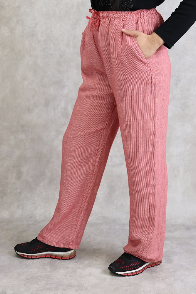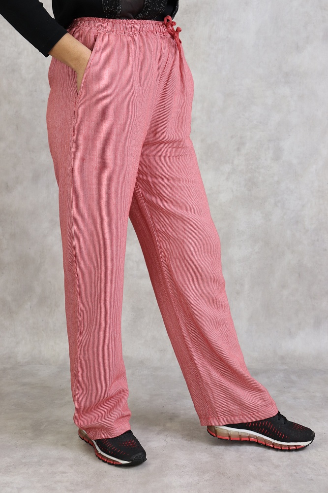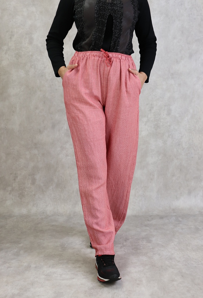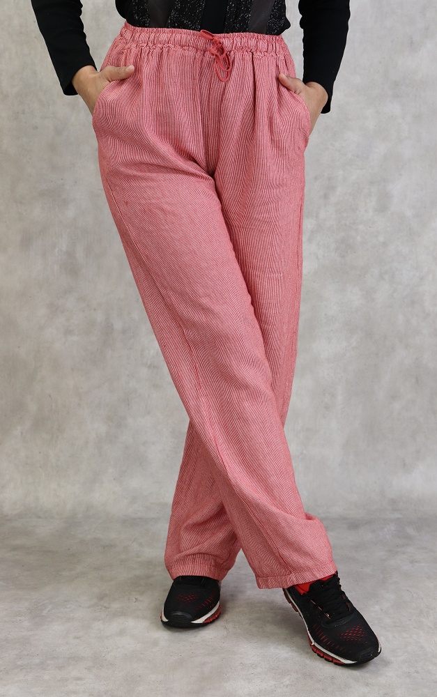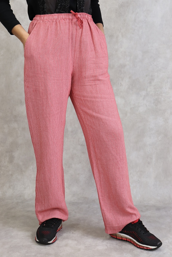 Pantalon, 2 poches italiennes, coupe droite, taille élastique, cordon de serrage.