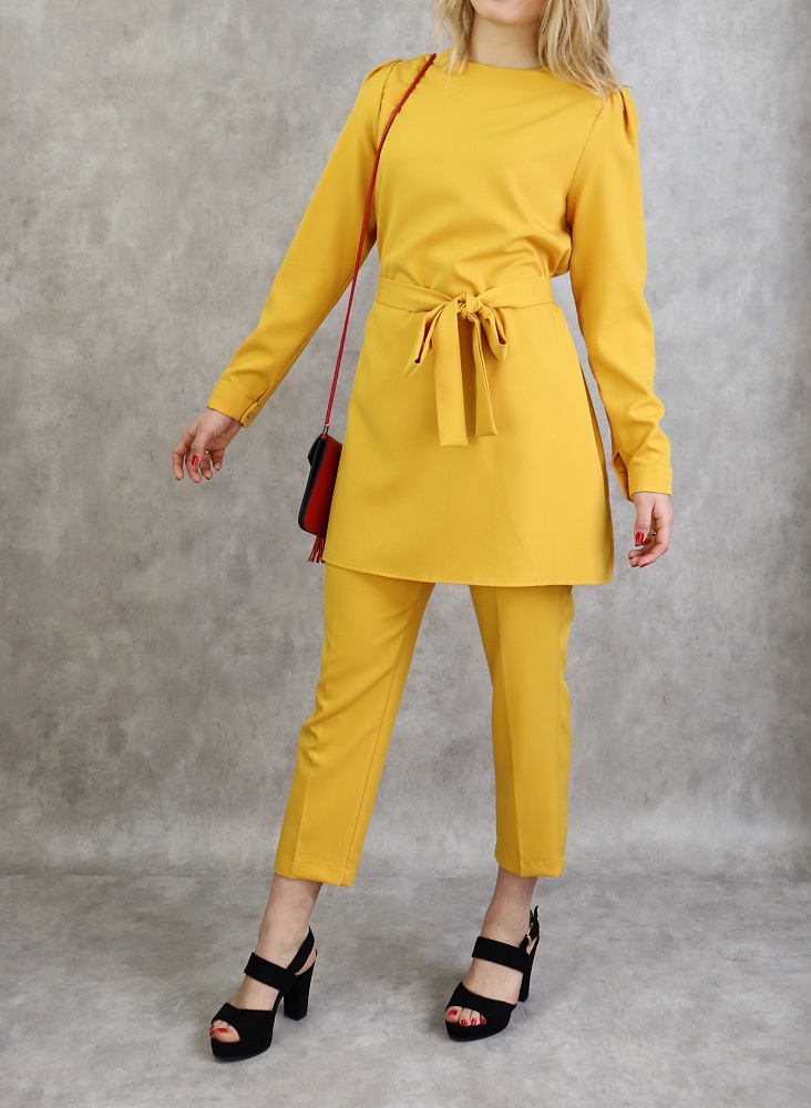Ensemble chic 2 pièces tunique et pantalon de couleur jaune moutarde Vetement & Accessoire