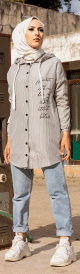 Tunique-Chemise imprimée avec capuche (Vetement Mode Musulmane Turquie) - Rayures noires - REF. 33880 (18.00 €)