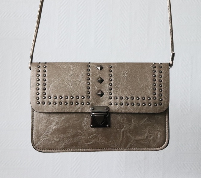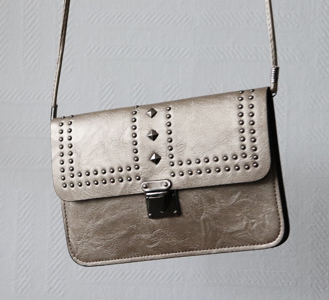 Sac à main pochette à rabat pour femme de couleur - Couleur beige argenté - REF. 32626 (12.90 €)