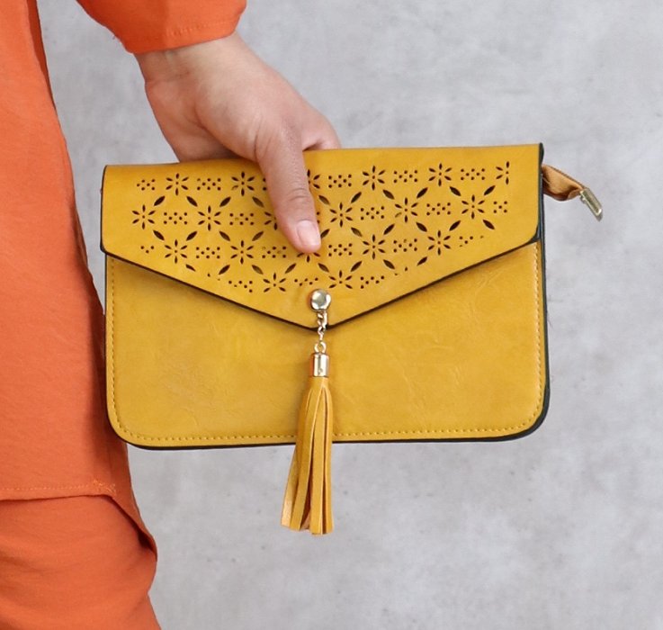 Sac à main pochette à rabat pour femme - Couleur jaune Vetement & Accessoire
