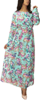 Robe longue fleurie et fluide pour femme - Couleur Vert d'eau - REF. 30395 (29.90 €)