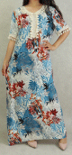 Robe longue d'intérieur ou d'été à imprimé exotique pour femme - Couleur Bleu et Rouille - REF. 33320 (19.90 €)