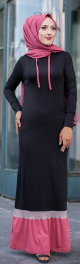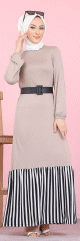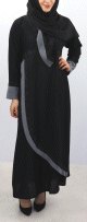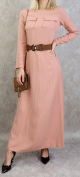 Robe longue col chemise, manches longues, poignets élastiques. Fermeture par haut boutonné, munie de deux lien sur les côté à la taille pour effet resserré.