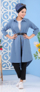 Tunique courte, col dégagé, lien de serrage, manches longues finition élastiques aux poignets. Coupe droite, tissu fluide et léger.