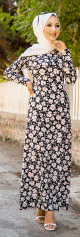 Robe longue à fleurs pour femme (Vetement Hidjab pas cher en ligne) - Couleur noir - REF. 33842 (19.90 €)