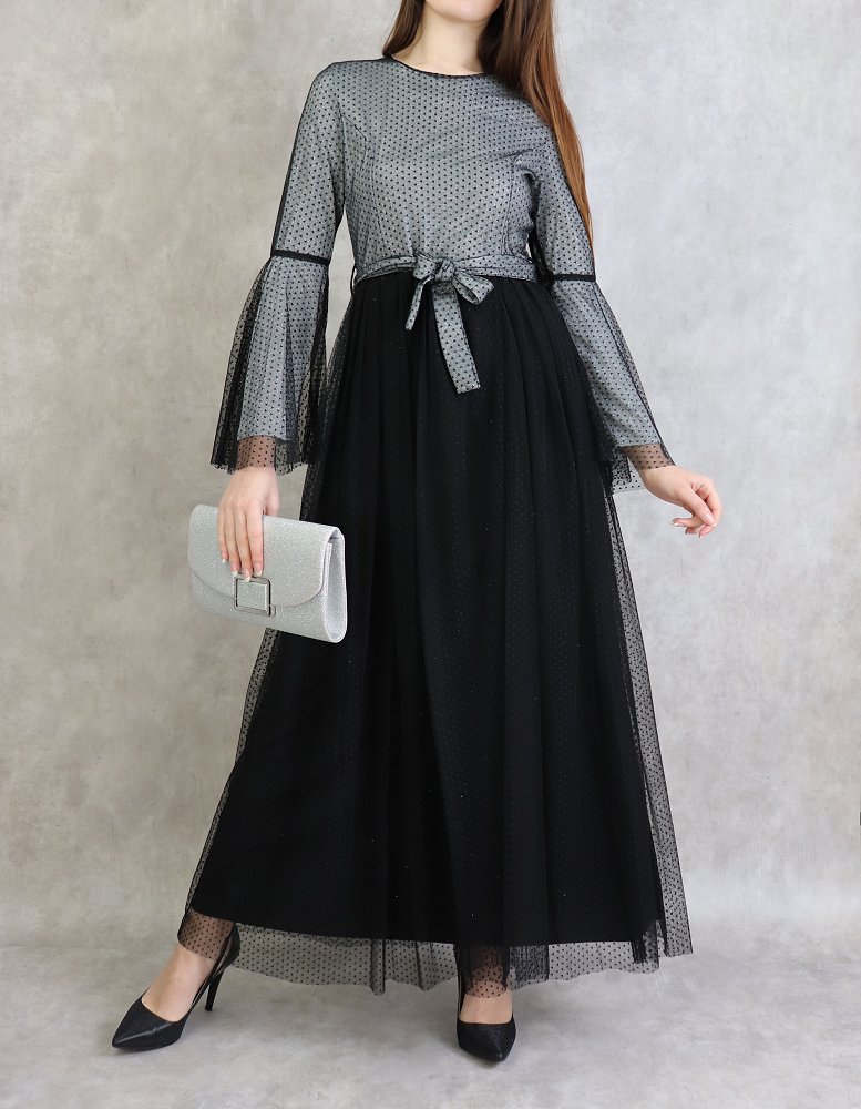 Robe de soirée longue élégante pailletée en tulle pour femme - Couleur argenté et noir Vetement & Accessoire
