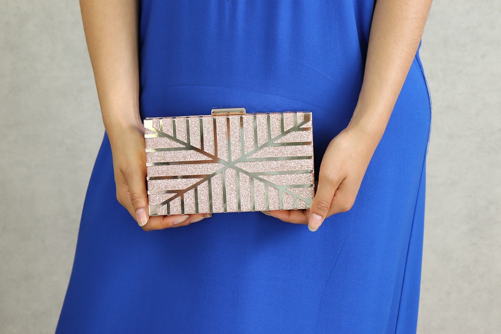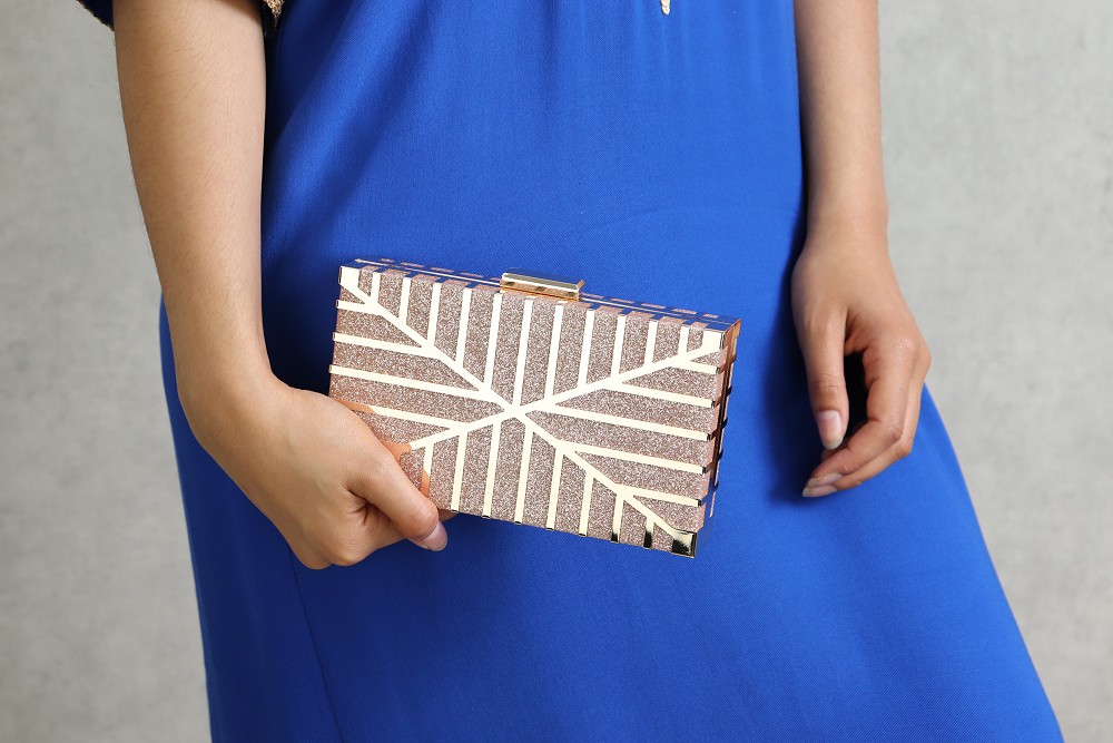 Sac à main élégant et brillant. Parfait pour événement spécial : parti, mariage, soirée, fêtes... Ce sac rectangulaire ciselé. Bandoulière chaîne métallique amovible. Fermeture par fermoirs-pression.