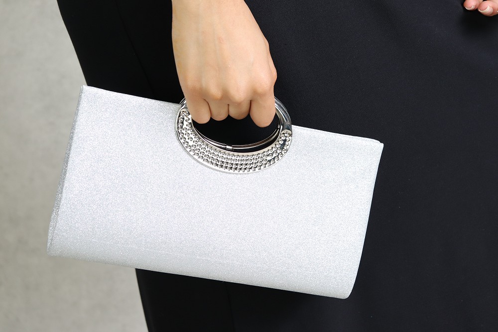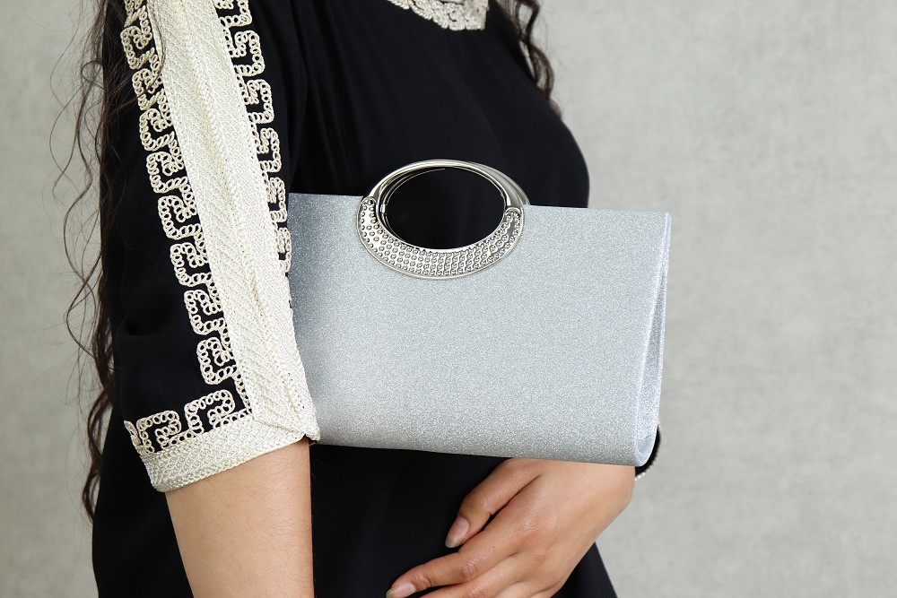 Pochette de soiree a poignet metallique - Sac a main tendance pour femme - Couleur argente