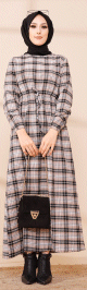 Choisissez cette longue robe, col rond ouverture zip au niveau du cou. Coupe légèrement évasée, manches longues.