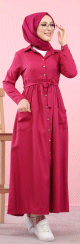 Robe entièrement boutonnée à poches et ceinture assortie (Vetement en ligne pour femme voilée) - Couleur fuchsia - REF. 32325 (29.90 €)