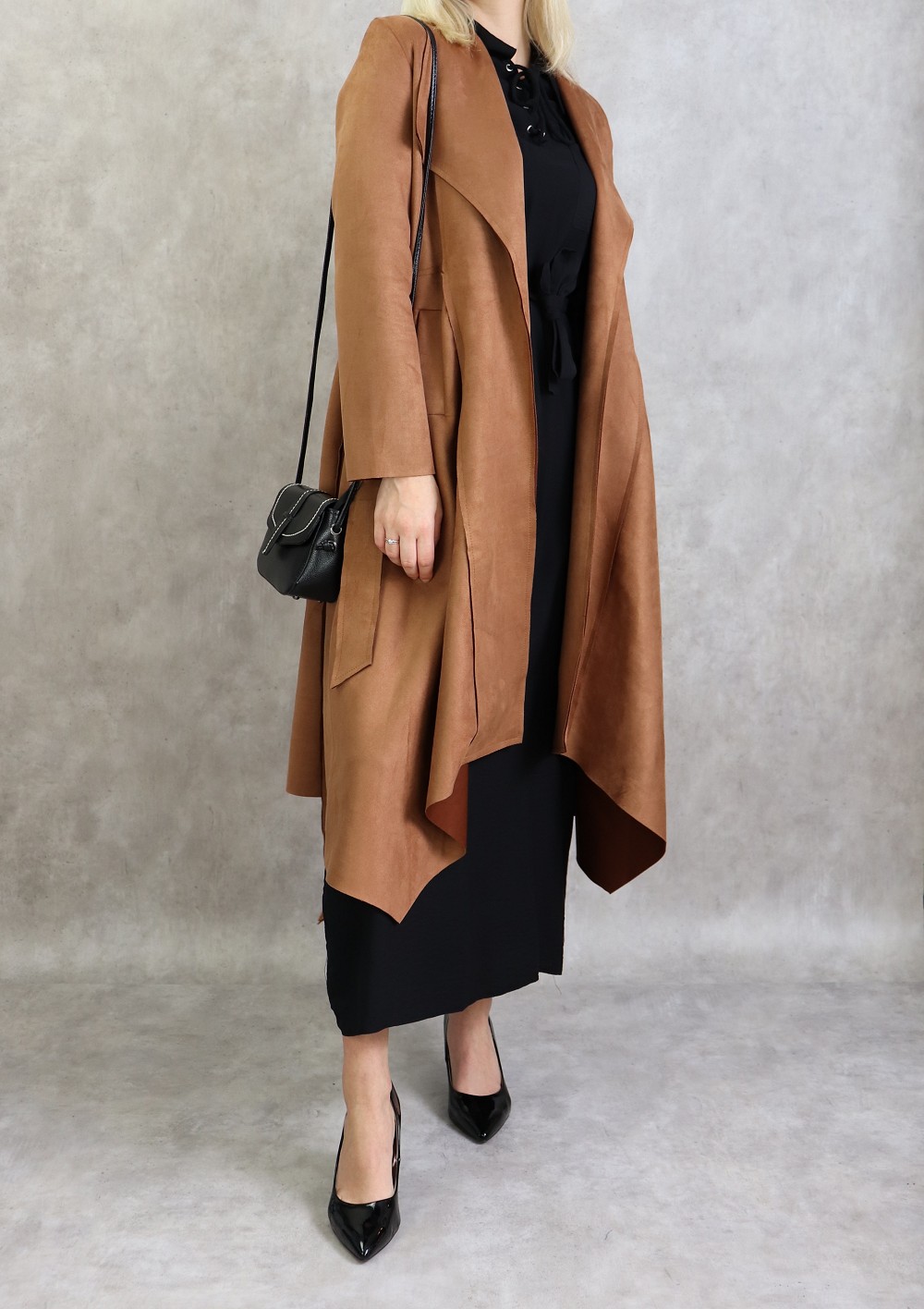 Veste trench effet nubuck au toucher daim de couleur marron noisette