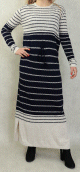Robe chemise longue à rayures bleues avec ceinture (Vetement hijab femme musulmane) - REF. 32968 (29.90 €)
