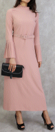 Robe longue à rayures avec ceinture pour femme voilée - Couleur rose poudré Vetement & Accessoire