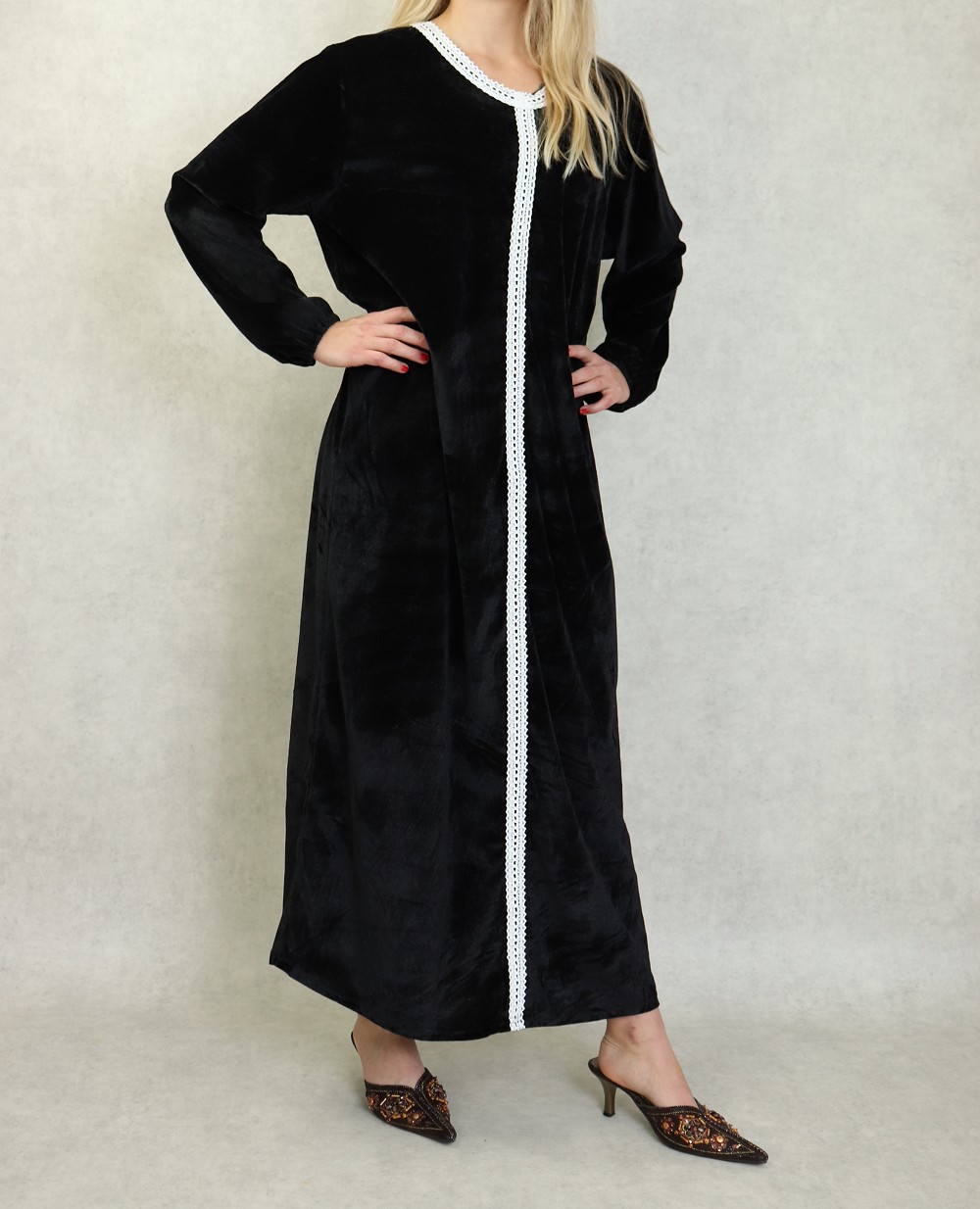 Robe orientale longue d'hiver ou d'intérieur, manches longues élastique au poignets, col en V, orné de broderies sur toute la longueur.