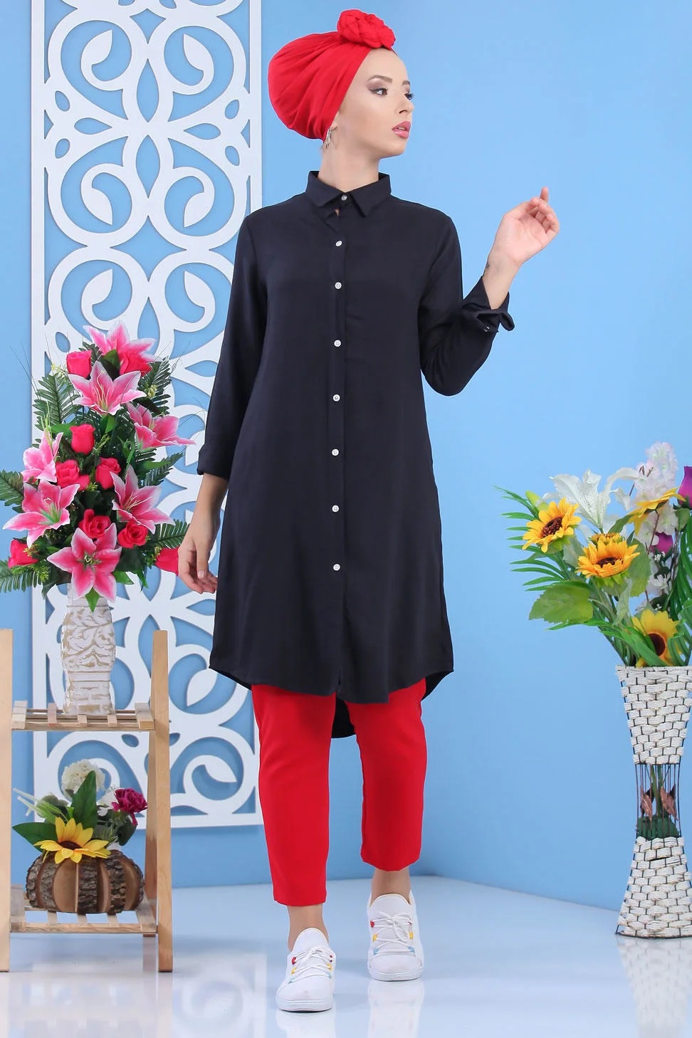 Tunique-Chemise ample boutonnée pour femme (Vetement Hijdab décontracté) - Couleur noir - REF. 32329 (25.00 €) - En Promotion à 19.00 €