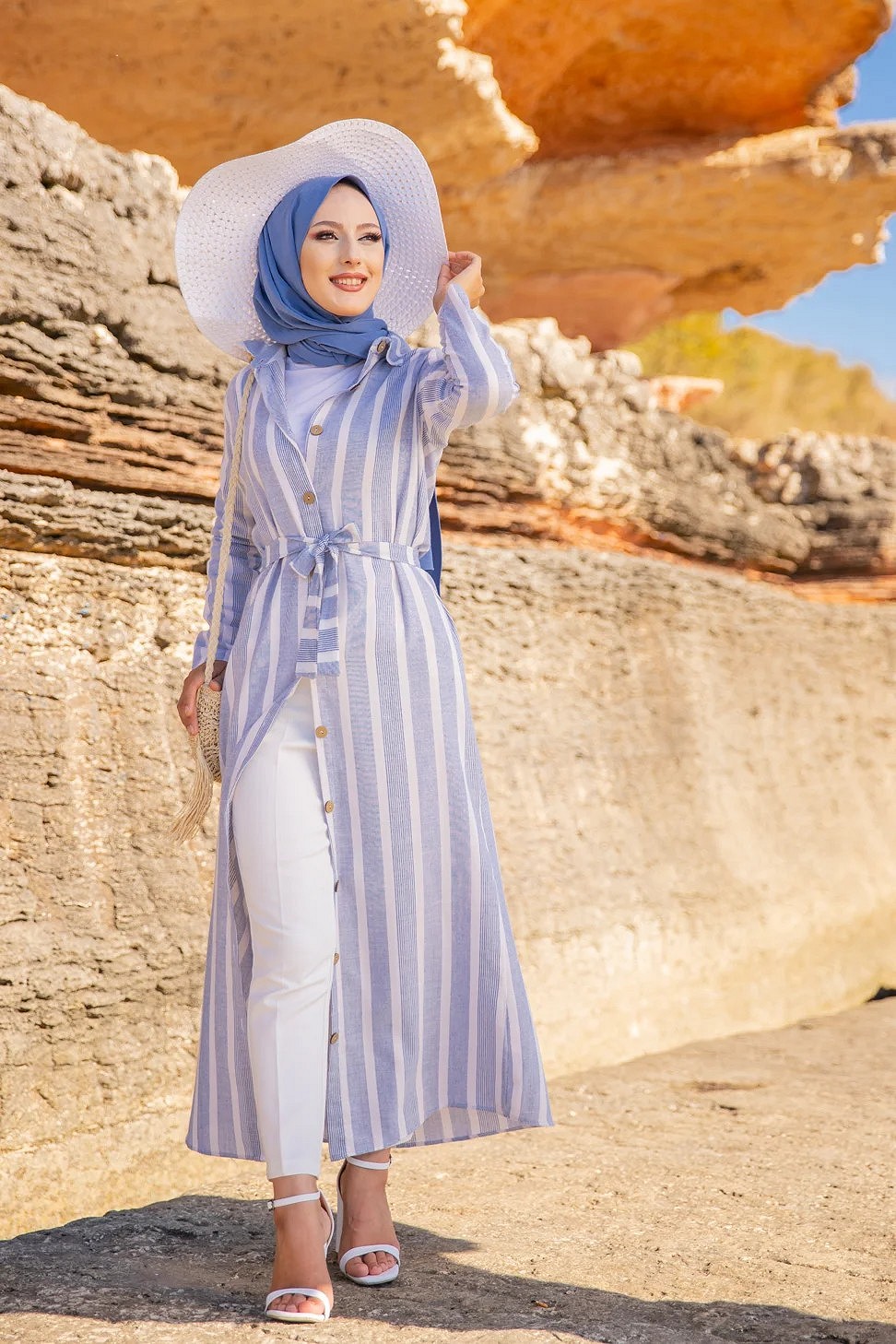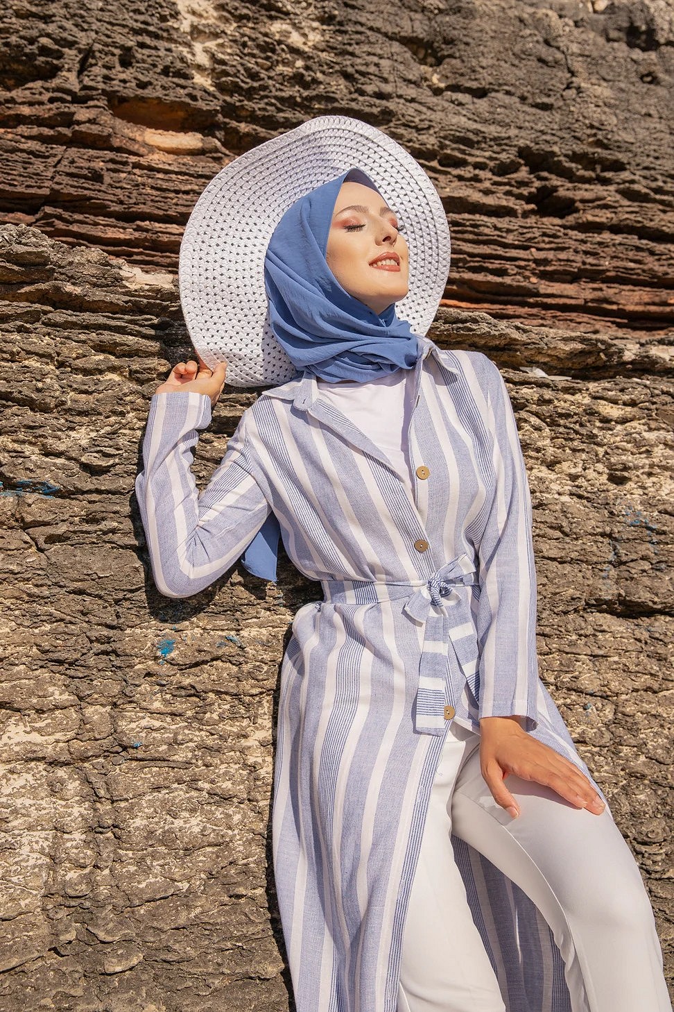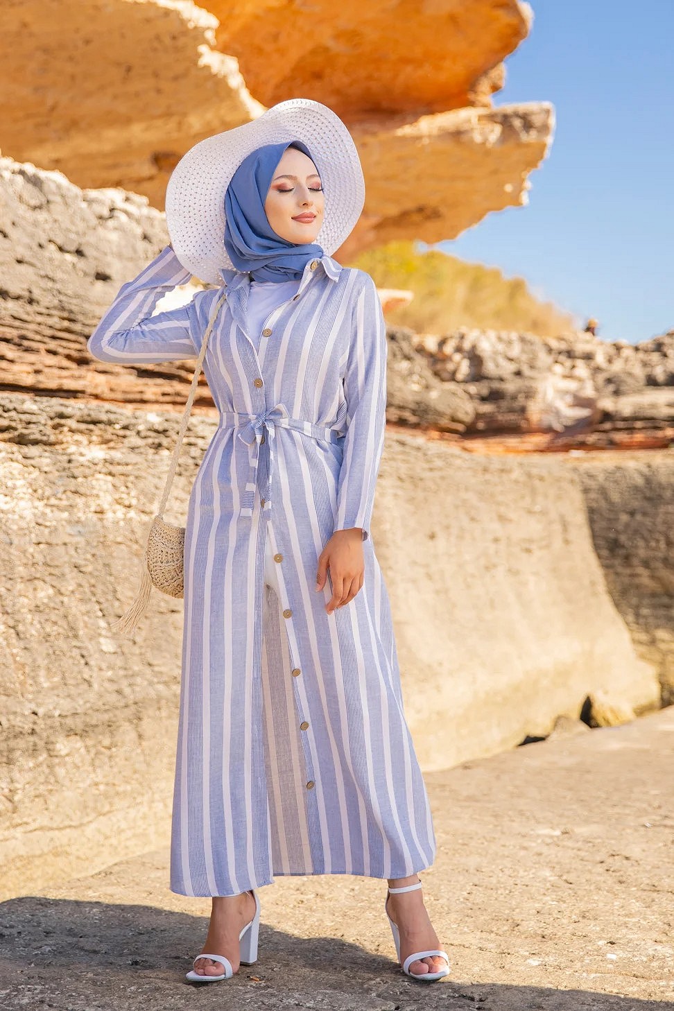 Robe chemise très longue boutonnée, coupe droit, avec un lien à nouer, col classique, manches longues, se porte avec légèreté. On aime son style chic décontracté. Tendance et flatteuse, cette version à rayures a tout pour nous plaire.