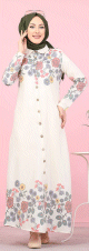 Robe-Chemise longue à fleurs pour femme (Vetement Hijab France) - Couleur écru - REF. 32289 (35.00 €)